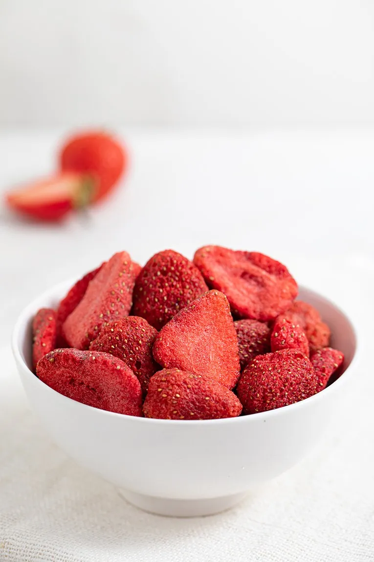 Traditional dried fruits are made using heat with added sugar/preservatives, which often changes their taste and texture and may reduce nutrients. Freeze-drying preserves up to 97%of the fruit’s nutrition and creates that signature crunchy texture, without added sugar or preservatives.